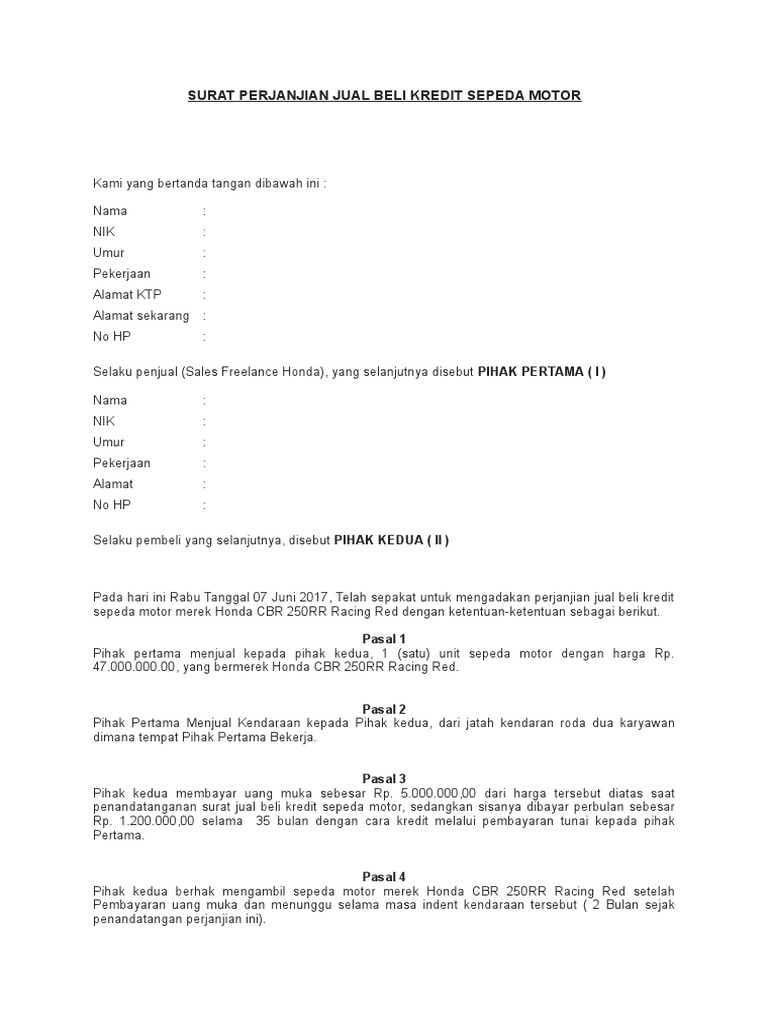 Contoh surat jual beli motor (cash/kredit) bermaterai format word doc 5 contoh surat perjanjian jual beli motor bekas 4 contoh surat perjanjian jual beli motor untuk penjual dan pembeli contoh surat perjanjian jual beli sepeda motor surat perjanjian jual beli motor 2 contoh surat jual beli motor yamaha dan honda 10 contoh surat jual beli motor & perjanjian terbaru 2021 | otoflik contoh surat.